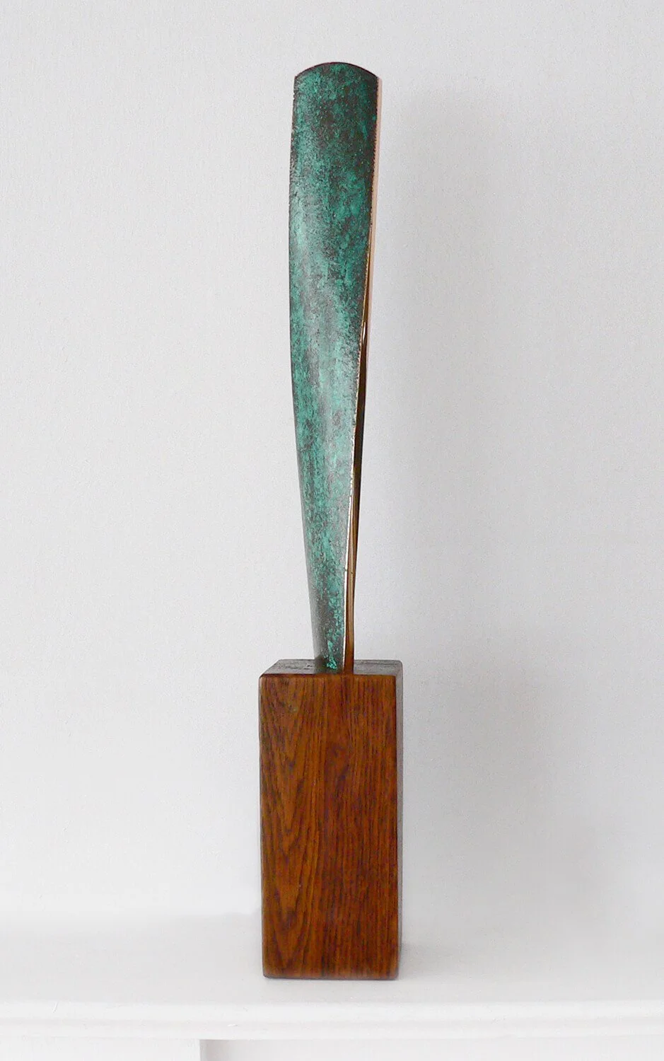 The moment a casting arrives from the foundry, Chris begins the painstaking finishing process: grinding, filling, texturing, patinating and polishing. Once the form is mounted, he always feels a thrill and sense of achievement, as he takes in the contrasting surfaces and innate balance of a new sculpture.